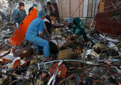 واخذت فرق الانقاذ تسحب جثثا متفحمة وتحاول انتشال اخرى من تحت الانقاض، بحسب مصور فرانس برس.