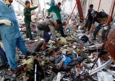 صنعاء ـ (أ ف ب) – قتل اكثر من مئة شخص واصيب المئات بجروح السبت في صنعاء في غارات جوية نسبت للتحالف الذي تقوده السعودية، اصابت حشدا كان يحضر موكب عزاء، بحسب الحوثيين.