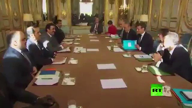 شاهد.. أمير قطر يمازح الرئيس الفرنسي