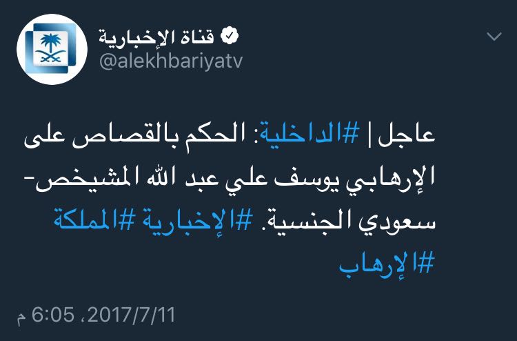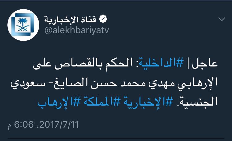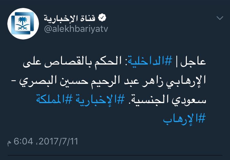 نفذت وزارة الداخلية اليوم حكم الاعدام في أربعة مدانين بالإرهاب في القطيف